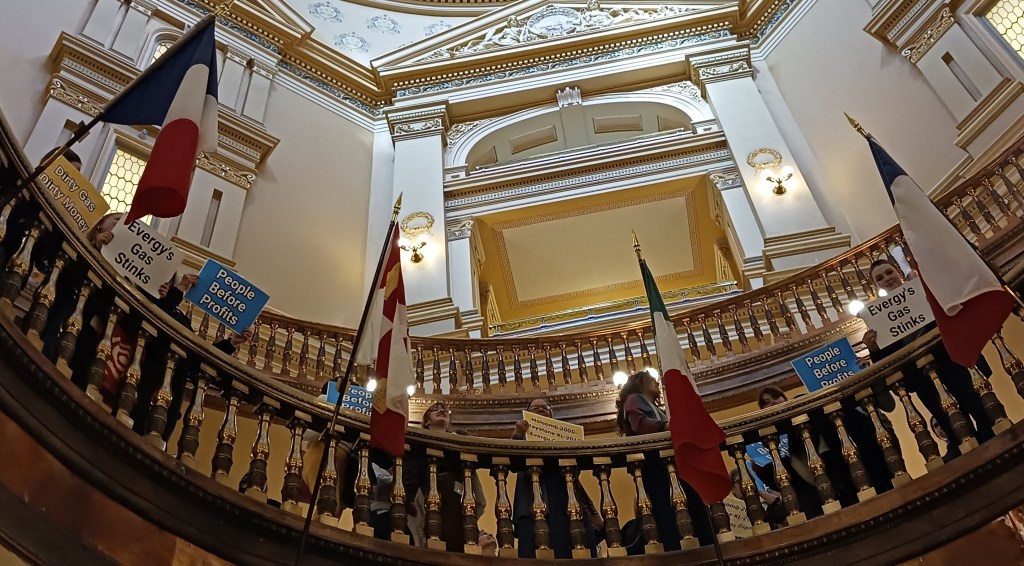 At WEALTH Day, Kansas Greens joined the Climate & Energy Project in their call to action against corporate monopoly Evergy and their plan to construct two new fossil gas plants here in Kansas and make customers pay for it. Kansas Greens submitted their video and written testimony to the Kansas Corporation Commission recording their opposition and we encourage others to do the same. (Public comments close on April 7 so hurry and tell the KCC to oppose Evergy’s request!)