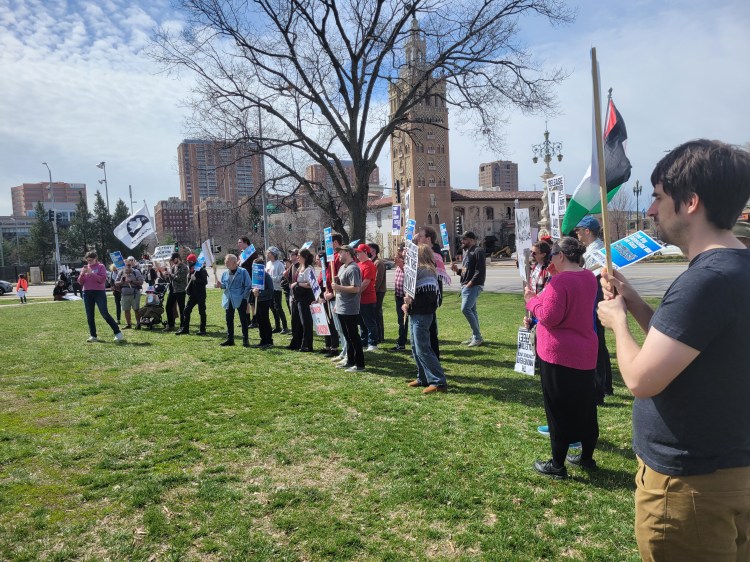 Members of our Kansas City chapter also joined with the Kansas City Missouri Green Party and Workers Strike Back in March to defend union rights and call for the release of Mahmoud Khalil and all other student activists and residents illegally detained by ICE.