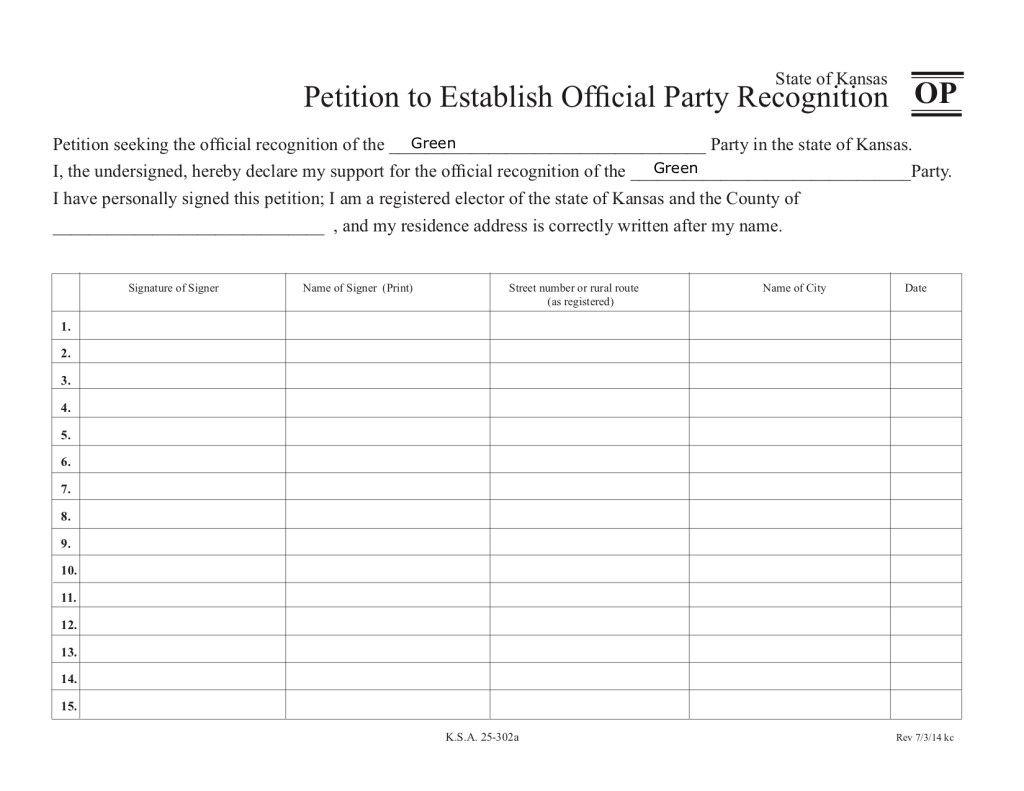 Attaining ballot access is likely the most important thing we can do to grow the Green Party in Kansas. Once we have ballot access, the Kansas Green Party can nominate candidates for ANY PARTISAN OFFICE and registered Kansas voters will be able to register as Greens.